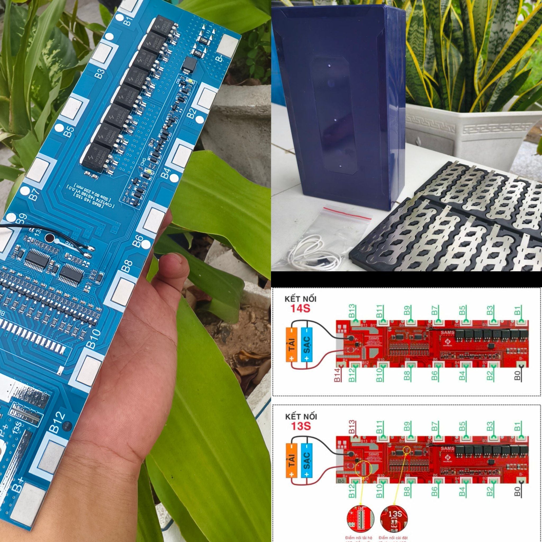 - Hộp Pin 48V 13S6P 14s6p trên cùng 1 bộ vỏ hộp Lithum kèm mạch bảo vệ - Cho Xe đạp điện và bình lưu trữ 13s 6p.